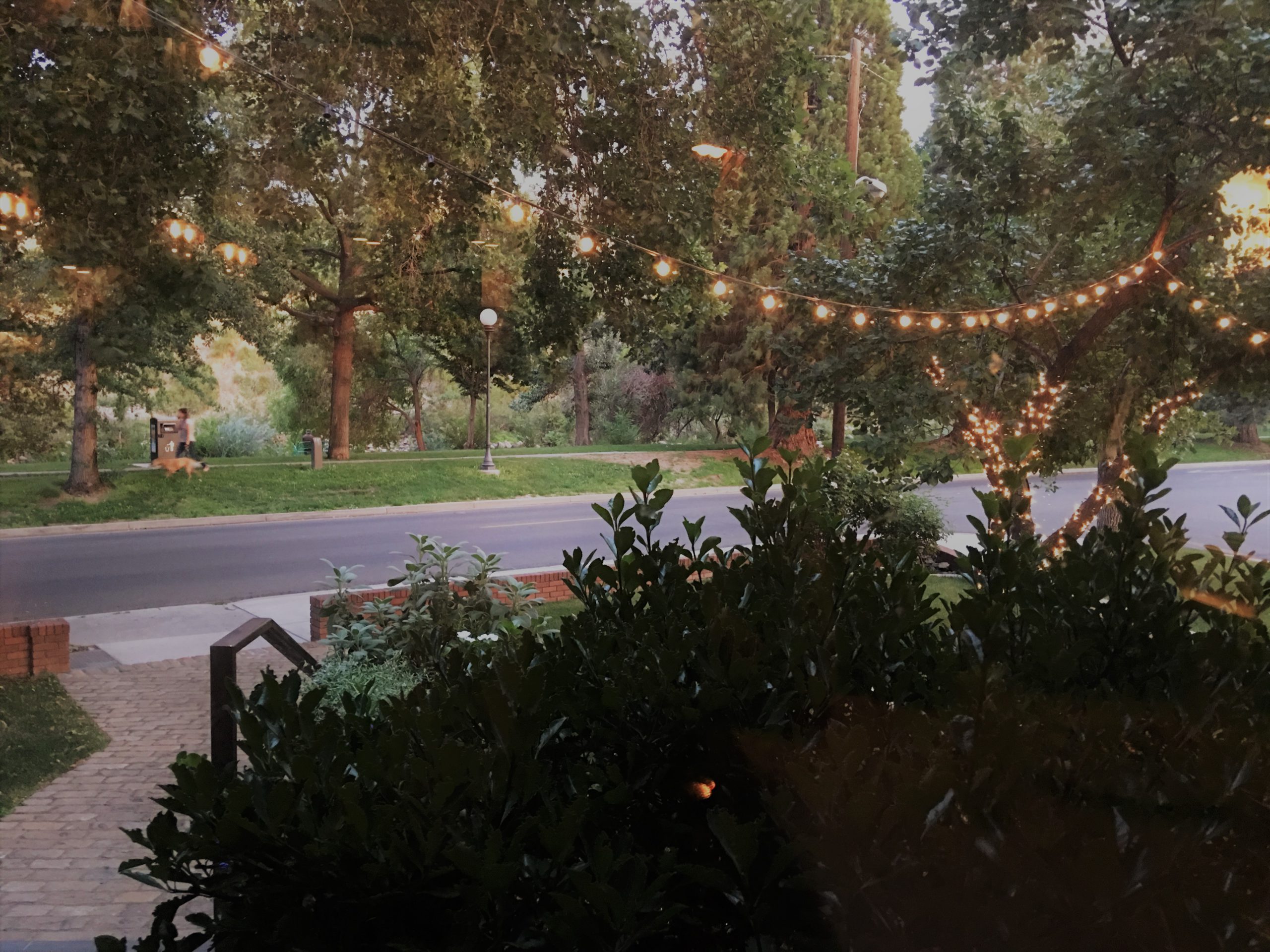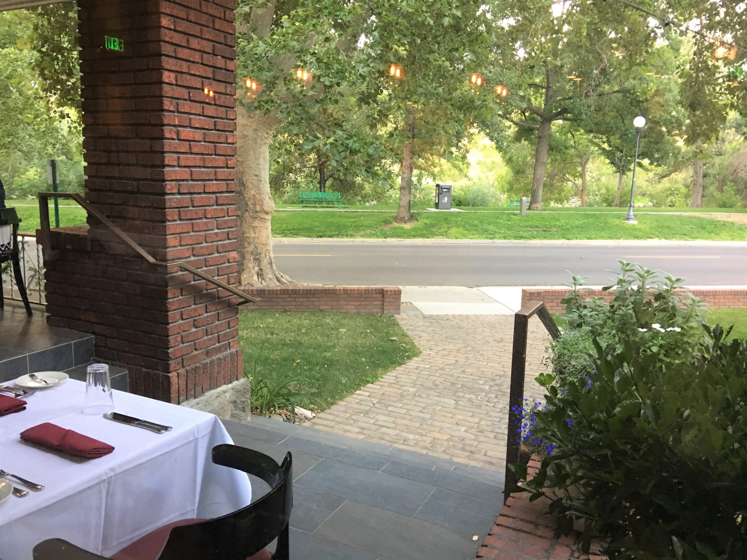窓際席からの眺め。左はトラッキーリバー沿いの遊歩道。