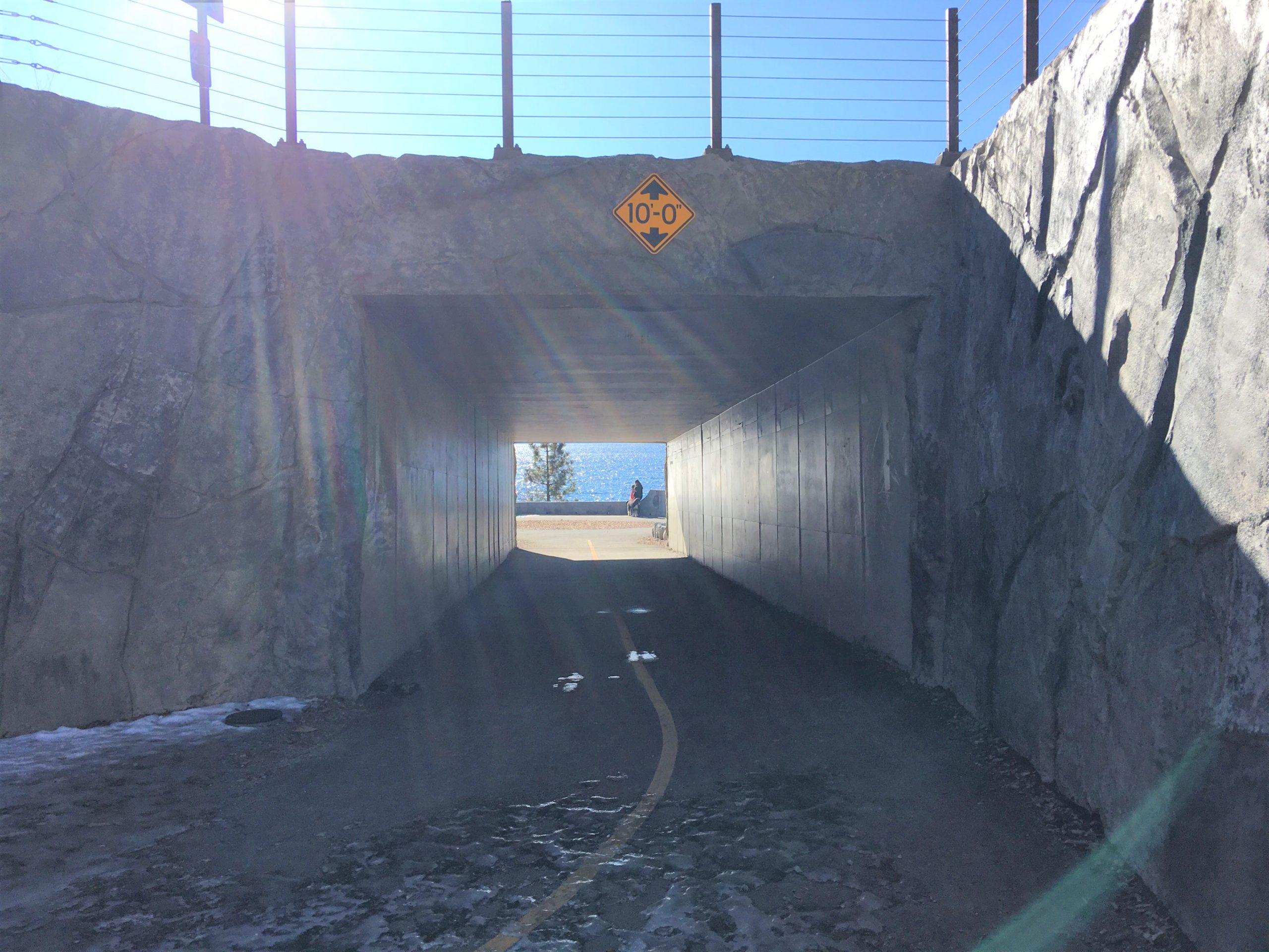 山側から湖畔沿いへは州道28号線の下のトンネルをくぐるので車道を渡らなくてすみ安全です。このトレイルの長所のひとつでもあり、費用もかかったポイントです。