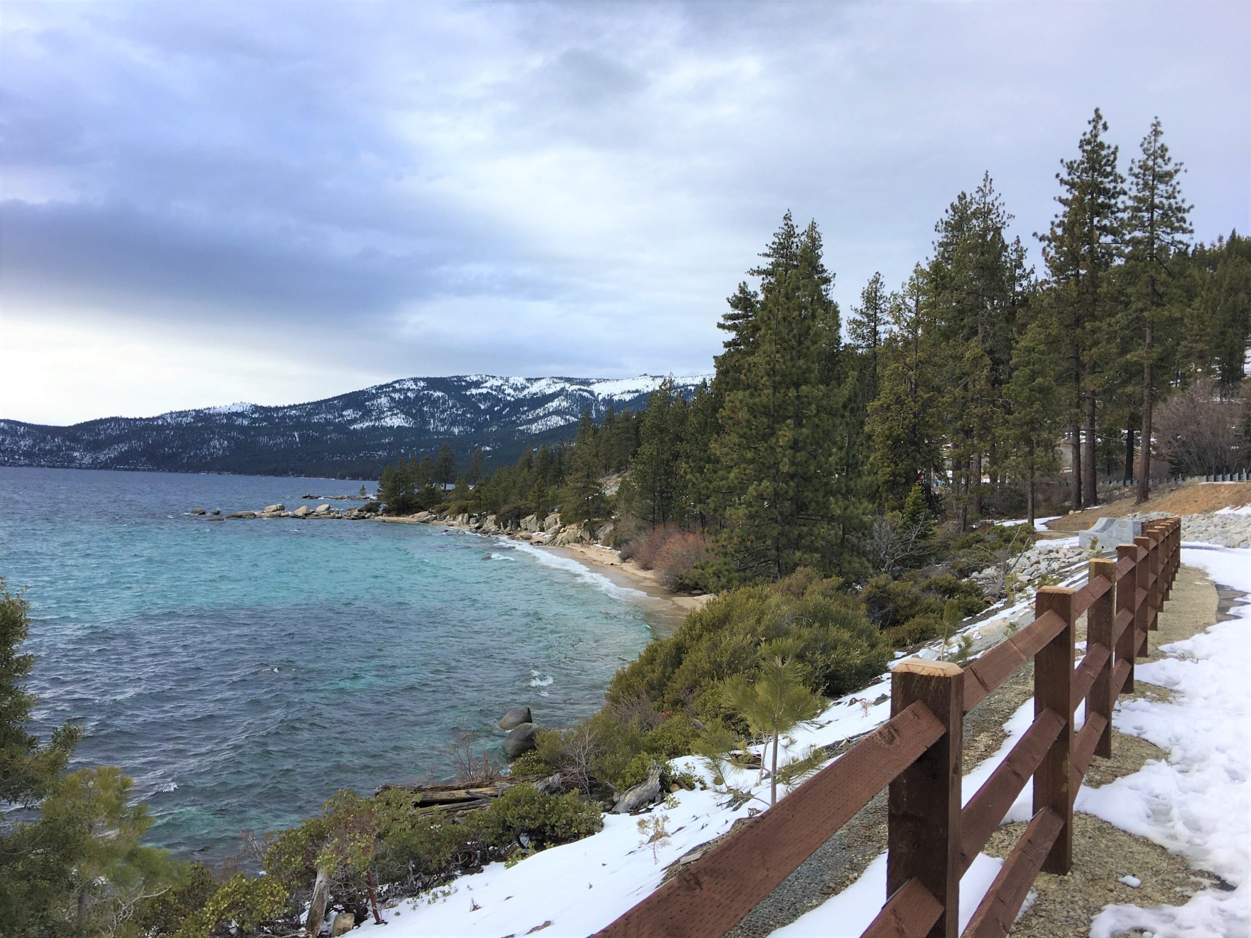 昨夏(2019年6月)に満を持して開通した Tahoe East Shore Trail は、タホ湖の住民やファンにとって積年の夢であった湖岸沿いの安全で風光明媚な遊歩道兼バイク・トレイル。総工費は約12ミリオン・ドル(約13億円)。2019年11月にはジャスティン・ビーバー(25才)がプライベートでこの遊歩道を訪れた際に「お祈りと瞑想をしに来たんだ。」とインスタグラムに投稿したことで、この遊歩道、一躍全国区になってもいます。オープンから夏季、そしてビーバー効果があった際の混雑を避けてるうちに時間が経っちゃいましたが、落ち着いたであろう2020年1月にようやく訪れて来ました!
