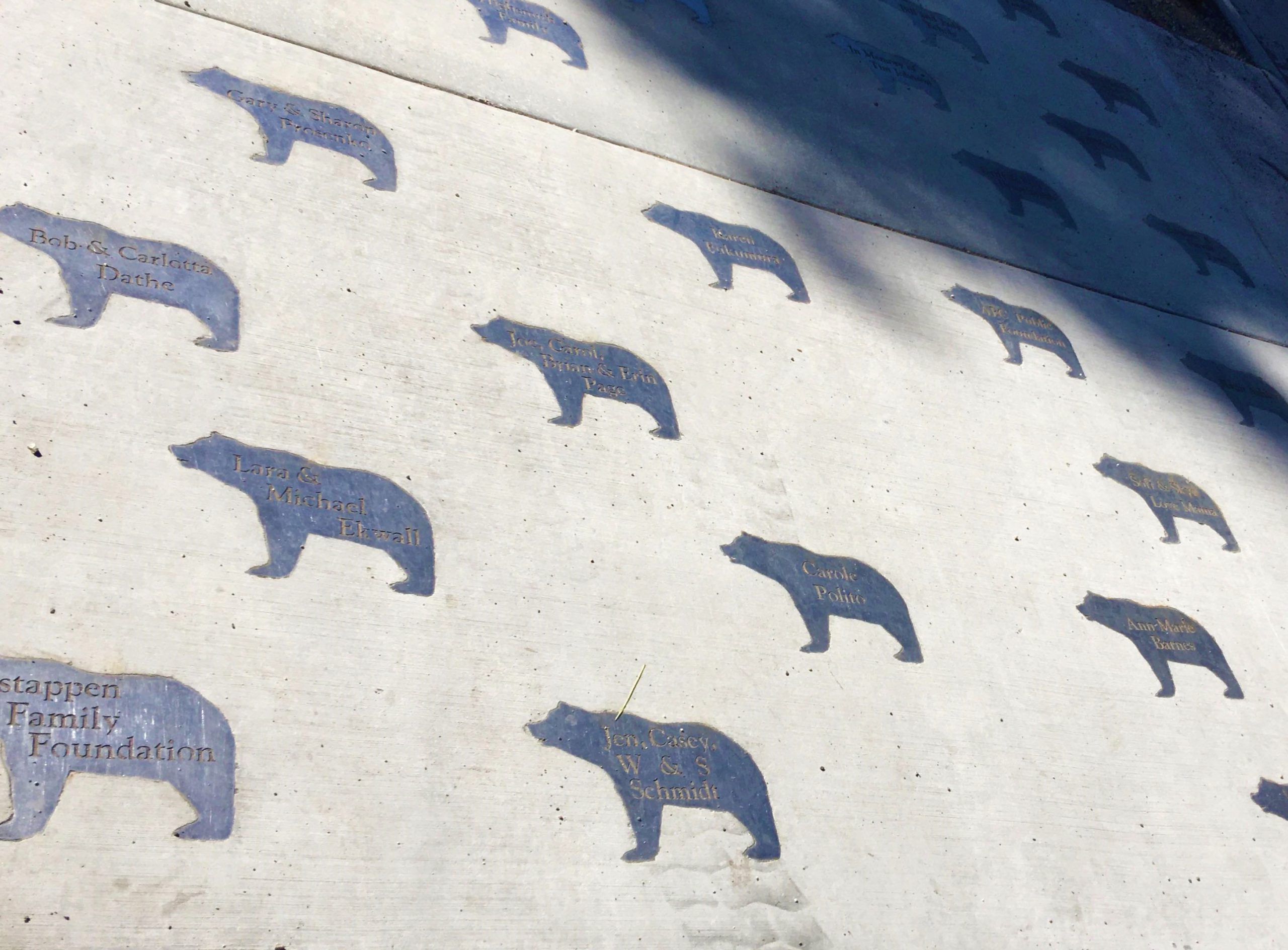 Tahoe Fundへ5000ドル以上寄付をするとこんなふうにトラウト(鱒)のプレートに名入れしてもらえます!100ドル以上の寄付は寄付記念ウオールへ名入れ、2500ドル以上の寄付は舗道に埋め込む熊のプレートへ名入れしてもらえます。寄付金はタホ湖全域のバイク・トレイル の運営組織へ寄贈されます。詳しくはこちら→ https://www.tahoefund.org/ways-to-give